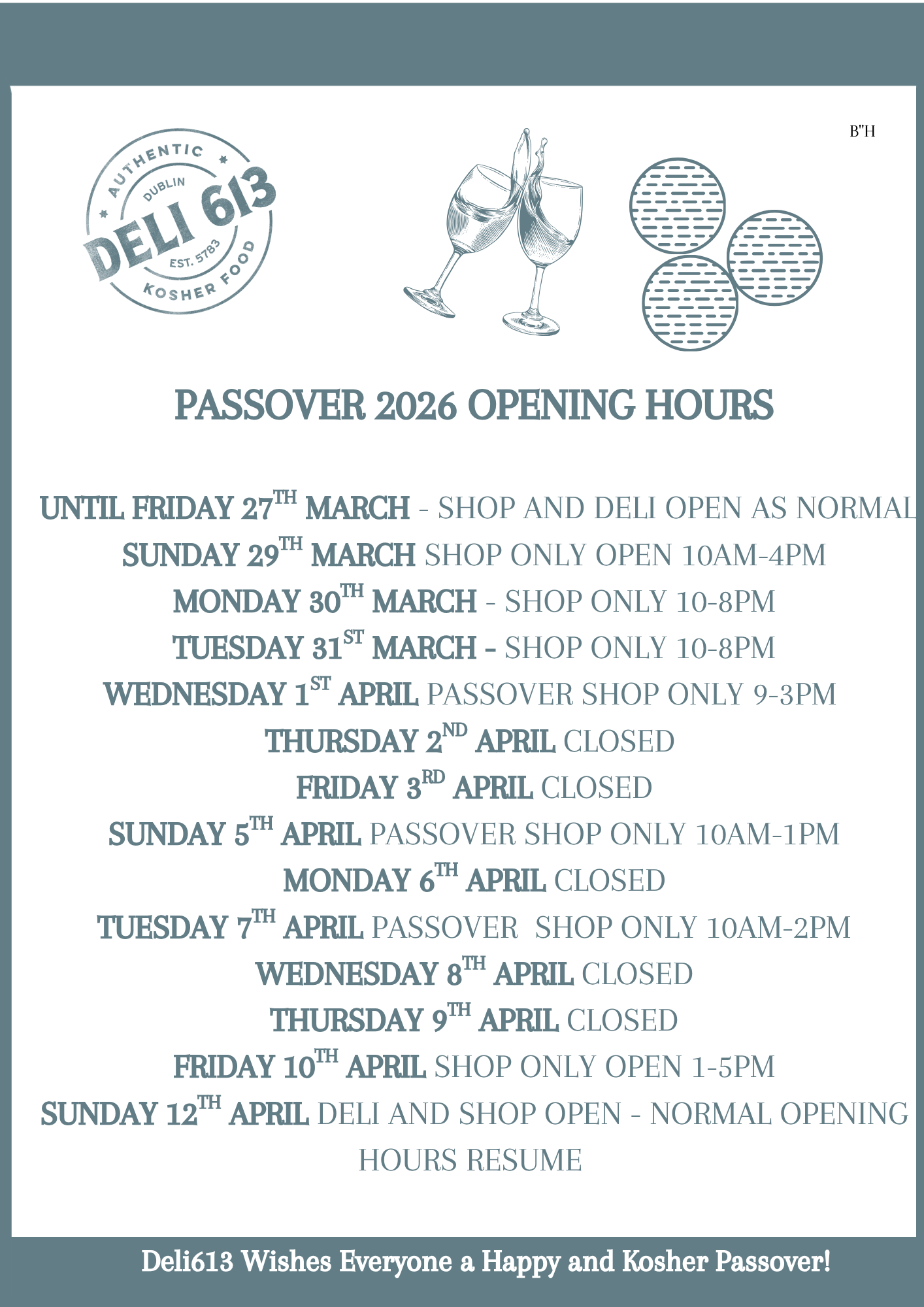 OUR OPENING HOURS MAY CHANGE FOR IRISH OR JEWISH HOLIDAYS - PLEASE CHECK BACK OFTEN FOR UPDATES.